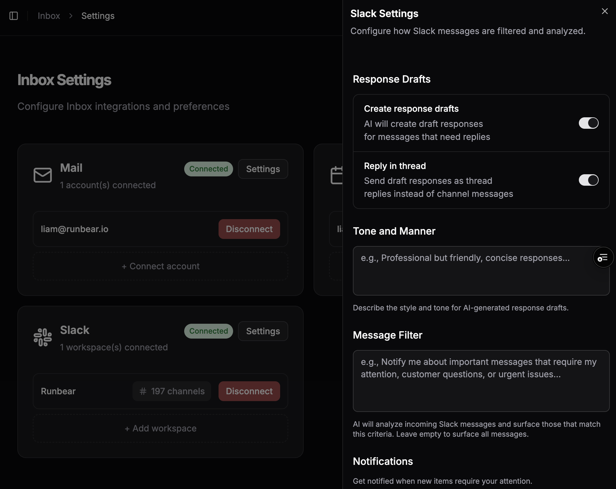 Connect tools like Notion or Linear so Inbox Agent has internal context to draw on when drafting responses. See Connect tools for details.