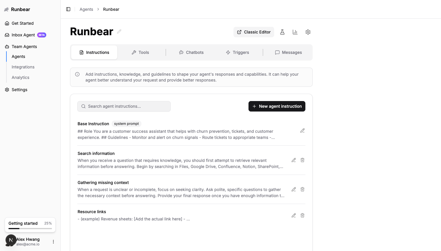 Unlike Inbox Agent, which suggests drafts for you to review, Team Agent acts autonomously. It reads messages, executes tools, queries knowledge bases, and posts responses on its own.